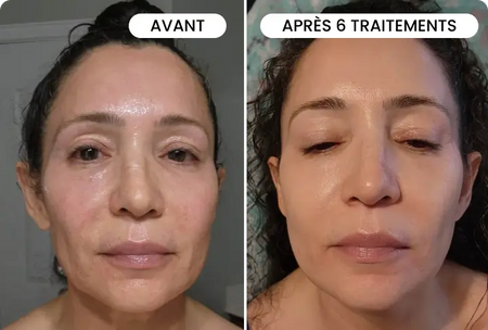 Beaucoup d'utilisatrices constatent un changement dès les 1 à 2 premiers jours : peau plus lumineuse, ridules assouplies, teint plus uniforme. Les résultats plus profonds — fermeté, élasticité, réduction des rides — se renforcent au bout de 4 à 8 semaines.